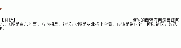 下面是表示地球自转方向的四幅图,其中正确的是( )