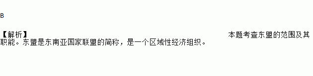 B 【解析】本题考查东盟的范围及其职能。东盟是东南亚国家联盟的简称,是一个区域性经济组织。