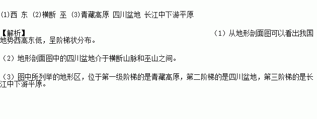 (2)地形剖面图中的四川盆地介于____________山和___________山之间。