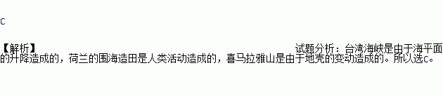 A. 台湾海峡 B. 长江三角洲 C. 荷兰围海大坝工程 D. 喜马拉雅山