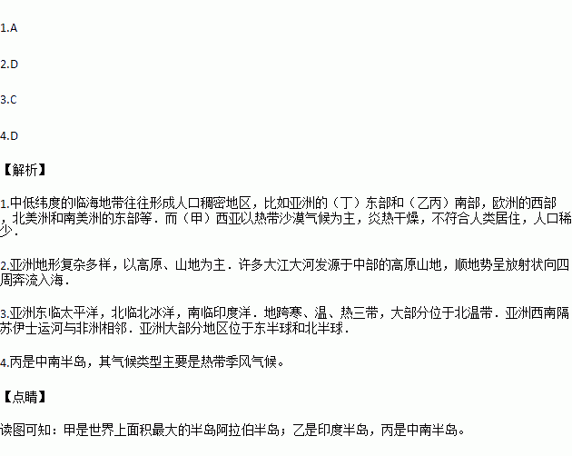 亚洲是我们共同的家园,读下图,回答下面小题。