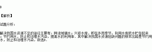 A.兴建水库 B.节约和保护水资源 C.跨流域调水 D.提高水价