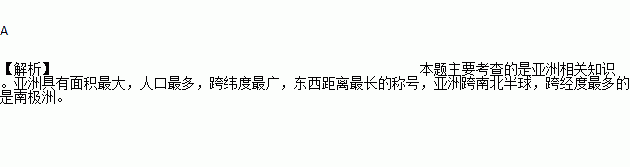 世界上跨纬度最广、东西距离最长的大洲是( )
