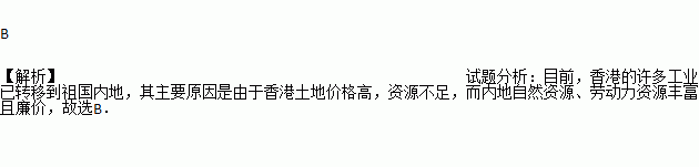 目前,香港80%以上的工业转移到祖国大陆,主要原因是( )