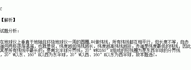 ①与地面垂直 ②长度不等 ③与纬线垂直相交 ④连接南北两极