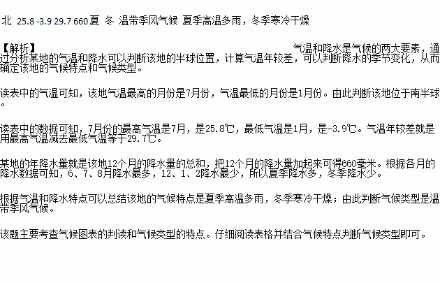 (1)由该地最高月气温出现的月份可知,该地位于____(南或北)半球。