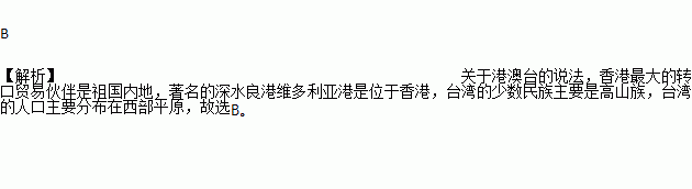 某班的地理板报介绍港澳台时,内容有误的是( )