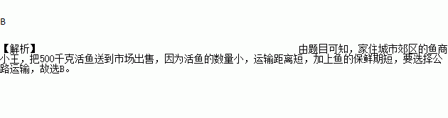 家住城市郊区的鱼商小王,把500千克活鱼送到市场出售,应选择的运输方式是