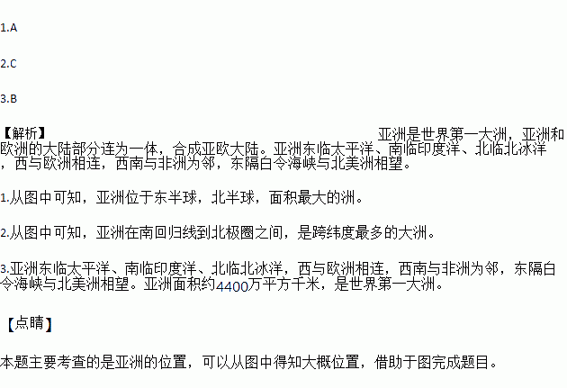 1.´Ó°ëÇòλÖÿ´£¬ÑÇÖÞµÄÖ÷Ì岿·ÖλÓÚ