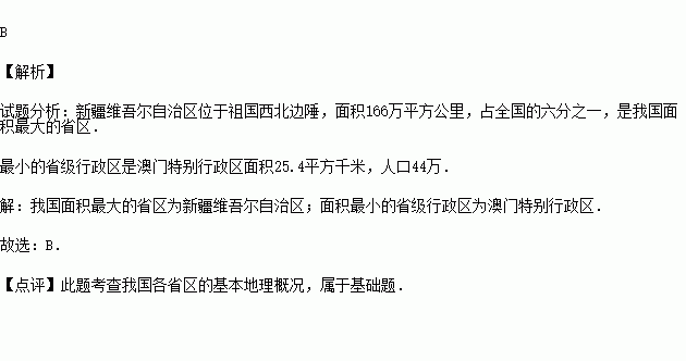 我国面积最大和最小的省区是( )
