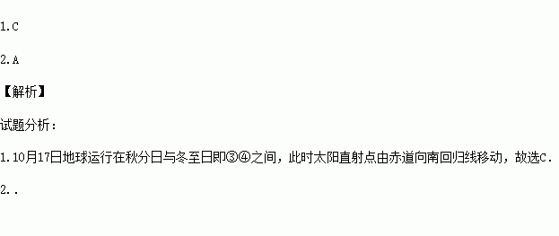 1.当天地球公转到示意图中的
