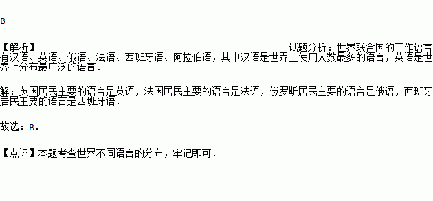 小明收到在加拿大留学的姑姑用当地语言文字写给他的一封信、信的语言文字是( )。