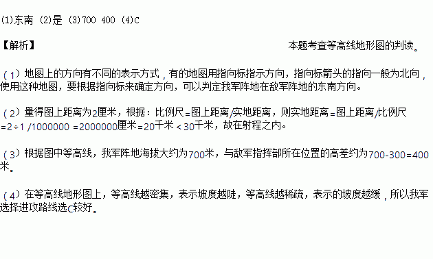 (3)我军阵地海拔大约为________米,与敌军指挥部所在位置的高差约为________米。