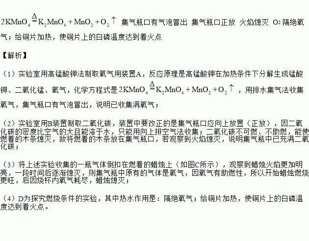 £¨1£©ÊµÑéÊÒÓÃ×°ÖÃAÖÆÈ¡ÑõÆø£¬·´Ó¦µÄ»¯Ñ§·½³ÌʽÊÇ_____£¬ÓÃÅÅË®¼¯Æø·¨ÊÕ¼¯ÑõÆø£¬ÈçºÎÖªµÀÒÑÊÕ¼¯Âú_____¡£