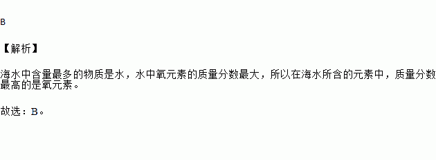在海水所含的元素中,质量分数最高的是( )