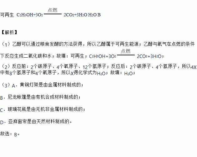 (1)开发和利用新能源是解决能源问题的重要途径。在汽车的汽油中加入适量的乙醇,可以适当节省石油资源,并在一定程度上减少汽车尾气对大气的污染。其中乙醇属于_____(填“可再生”或“不可再生”)能源,乙醇燃烧的化学方程式为_____。