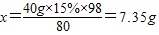 解答:解:设石油产品中含H2SO4的质量是x