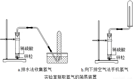 【答案】分析:实验装置的选取取决于反应物及其反应条件,锌与稀硫酸属于固液反应,所以选取简易的试、单孔橡皮塞即可;收集方法的选取取决于氢气的性质.