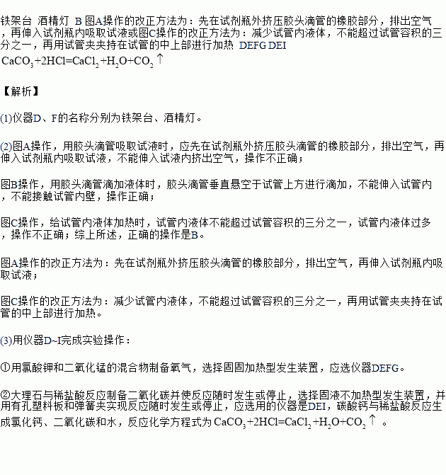 (3)选择仪器D~I完成下列实验操作: