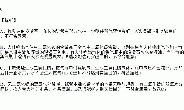 实验目的 | A检查装置的气密性 | B比较空气与人体呼出的气体中CO2含量 | C测定空气中氧气的含量 | D探究MnO2能否加快H2O2分解 |