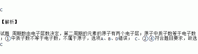 下列结构示意图表示元素周期表中第二周期元素的原子是( )