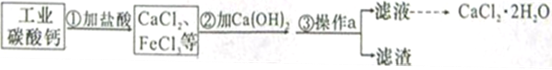 (7分)医用氯化钙常用于合成药物.以工业碳酸钙(含少量Fe3+等杂质)为原料生产二水合氯化钙(CaCl2·2H2O)的流程如下图所示.
