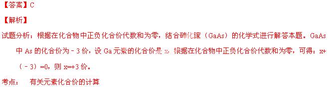 (2013?青岛)砷化镓(GaAs)是一种“LED”绿色节能光源材料.GaAs中As的化合价为-3,则Ga的化合价为( )