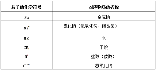 在宏观物质、微观粒子和化学符号之间建立联系,是化学科学特有的思维方式。已知氢、碳、氧、钠、氯五种元素的核电荷数分别为1、6、8、11、17。试按下列要求,写出微观粒子的化学符号,以及由这种粒子构成的或含有这种粒子的一种物质的名称(微观粒子和物质所涉及的元素限定在上述5种元素内)。