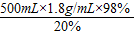-500mL×1.8g/mL=3510g,故答案为:3510