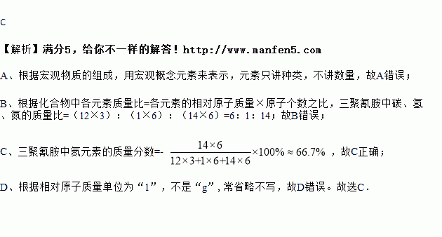C.三聚氰胺中氮元素的质量分数为66.7%