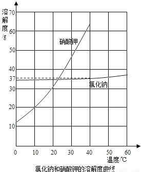 (1)氯化钠和硝酸钾两种物质的溶解度随温度(0~100℃)的变化见下表: