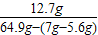 解答:解:根据质量守恒定律,恰好完全反应放出氢气的质量=7g+58.1g-64.9g=0.2g