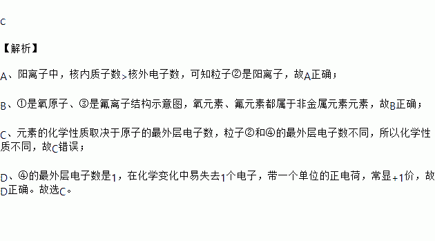 C.②④化学性质相似 D.④的原子在化合时常显示+1价
