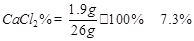 [若反应后溶液质量计算为:1.7g+25g=26.7g,扣这一步的1分;CaCl2%=(1.9g÷26.7g)×100%
