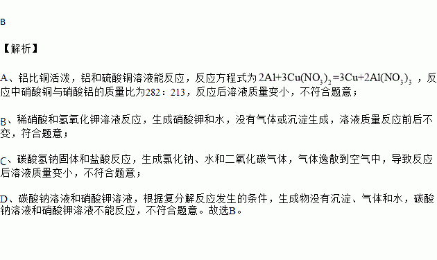 下列各组物质中,能相互反应且反应前后溶液总质量保持不变的是