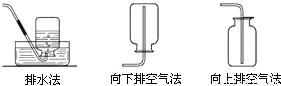 【答案】分析:常用气体的收集方法,如图所示,它主要有“排水法”、“向下排空气法”和“向上排空气法”三种.