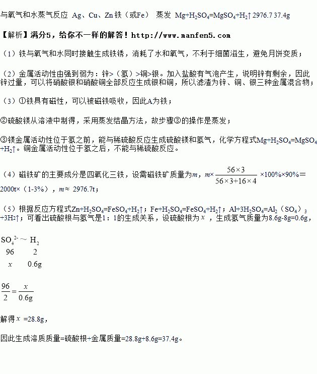 £¨5£©Ð¿·Û¡¢ÂÁ·Û¡¢Ã¾·ÛµÄ»ìºÏÎï8.6gÓëÒ»¶¨ÖÊÁ¿µÄÏ¡ÁòËáÇ¡ºÃÍêÈ«·´Ó¦£¬¾²â¶¨ÈÜÒºÖÊÁ¿½öÔö¼ÓÁË8g£¬½«·´Ó¦ºóµÄÈÜÒºÕô·¢Ë®·Ö£¬ÔòµÃ¹ÌÌåÁòËáп¡¢ÁòËáÂÁ¡¢ÁòËáþµÄ»ìºÏÎïµÄÖÊÁ¿Îª_____¿Ë¡£