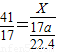 (6)根据每22.4L氨气质量为17g,计算出氨气的体积为aL的质量: