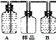 £¨2£©ÈçÌâËùʾÁ¬½Ó×°Öã¨AƿӦ±ÈÑùÆ·Æ¿ºÍBÆ¿ÂԴ󣩣¬AÆ¿ÓëBÆ¿ÖÐ×°ÂúË®£¬´ÓAÆ¿µÄ×ó¶Ë¹ÄÈë¿ÕÆø£¬½«AÖеÄË®ÅÅÈëÑùÆ·Æ¿ÖÁÇ¡ºÃ³äÂú£¬¼´¿É½«ÑùÆ·Æ¿ÖÐµÄ¿ÕÆøÑùÆ·×ªÒÆµ½BÖУ¬»òÔÚBÆ¿ÓÒ¶ËÁ¬½ÓÒ»¸ö×¢ÉäÆ÷£¬½«BÖеÄˮȫ²¿³é³ö£¬¼´¿É½«ÑùÆ·Æ¿ÖÐµÄÆøÌå×ªÒÆµ½BÖУ®![]()