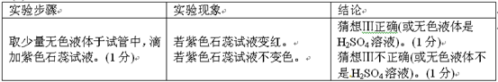 【猜想】Ⅰ. ……;Ⅱ. 无色液体是Ba(OH)2溶液;Ⅲ. 无色液体是H2SO4溶液。