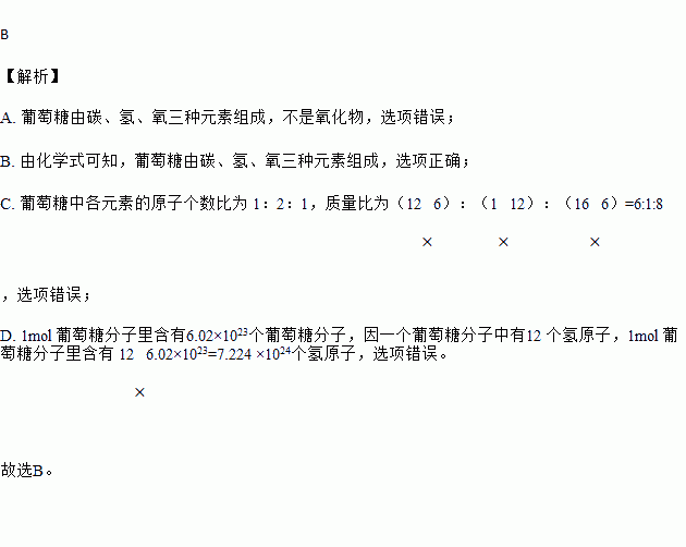 A.葡萄糖是氧化物 B.葡萄糖由碳、氢、氧三种元素组成