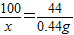 (4)注射器读数为220mL,则生成的二氧化碳的质量为:0.22L×2g/L=0.44g,设碳酸钙的质量为x
