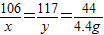 x=10.6g y=11.7g