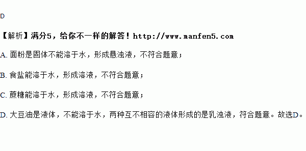 A.面粉 B.食盐 C.蔗糖 D.大豆油