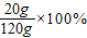 100%,用20g氯化钠和l00g水配制的l20g食盐水,其溶质质量分数为