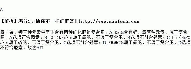 A.KNO3 B.CO(NH2)2 C.Ca(H2PO4)2 D.NH4HCO3