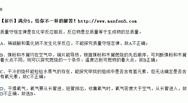 B.探究燃烧的一个条件:温度达到可燃物的着火点