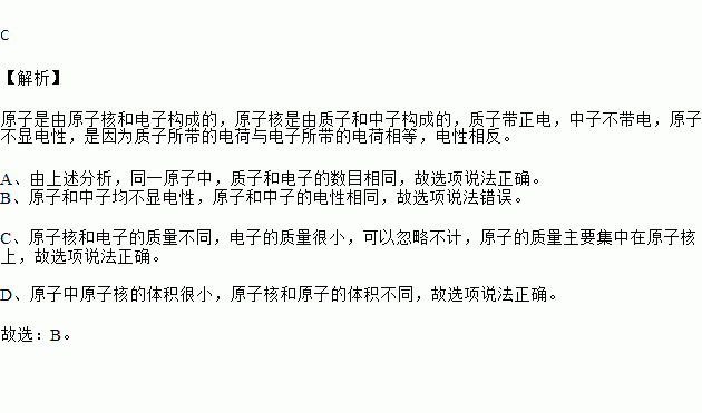 A. 质子和电子的数目相同 B. 原子和中子的电性不同