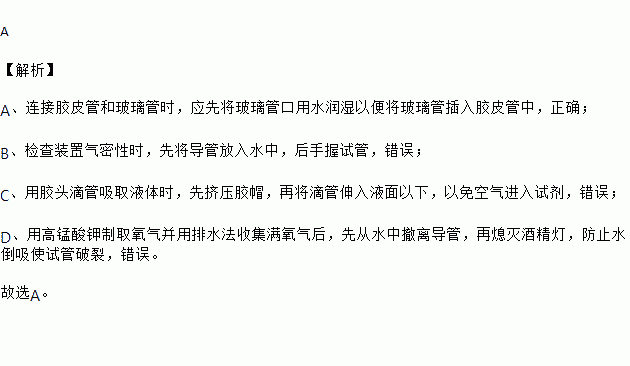 A.连接胶皮管和玻璃管时,应先将玻璃管口用水润湿