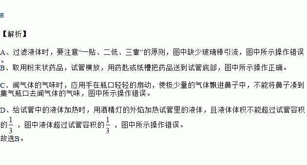 A.过滤 B.取用固体粉末